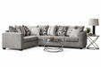 This modern L-shaped sectional is proudly made in Canada, featuring soft grey fabric upholstery,  and a spacious design for everyday comfort. Includes matching accent pillows and is perfect for relaxing, entertaining, or family gatherings.