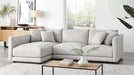 Stocked in Razzle Cypress. Toss in Alpaca Fawn. Sectional available available as sofa and left arm apartment sofa (as shown).